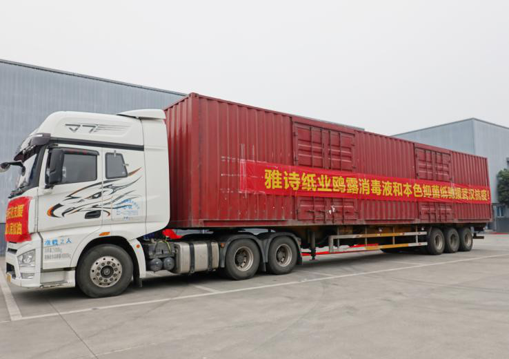 2月19日上午,武汉的5家受赠方医院和湖北省警察协会先后发来物资接收函,所有运输通行手续全部完善。雅诗纸业马上联系运输车辆,配双驾驶员,人休车不休,以最快的速度将物资运送武汉。